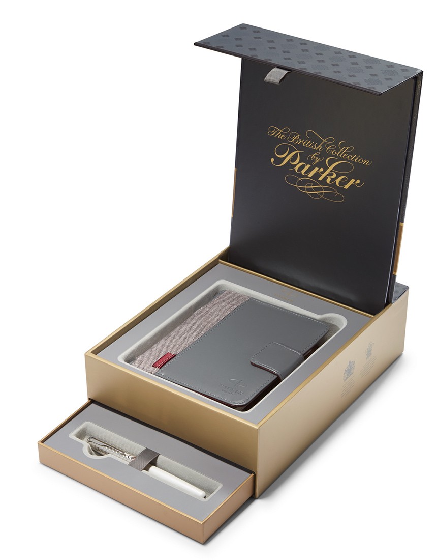 Набор Parker Sonnet F540 Pearl Metal PGT ручка перьевая F в компл.:блокнот/органайзер