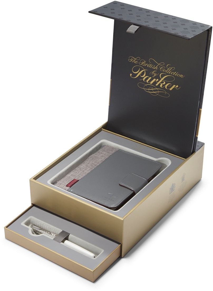 Набор Parker Sonnet F540 Pearl Metal PGT ручка перьевая F + органайзер