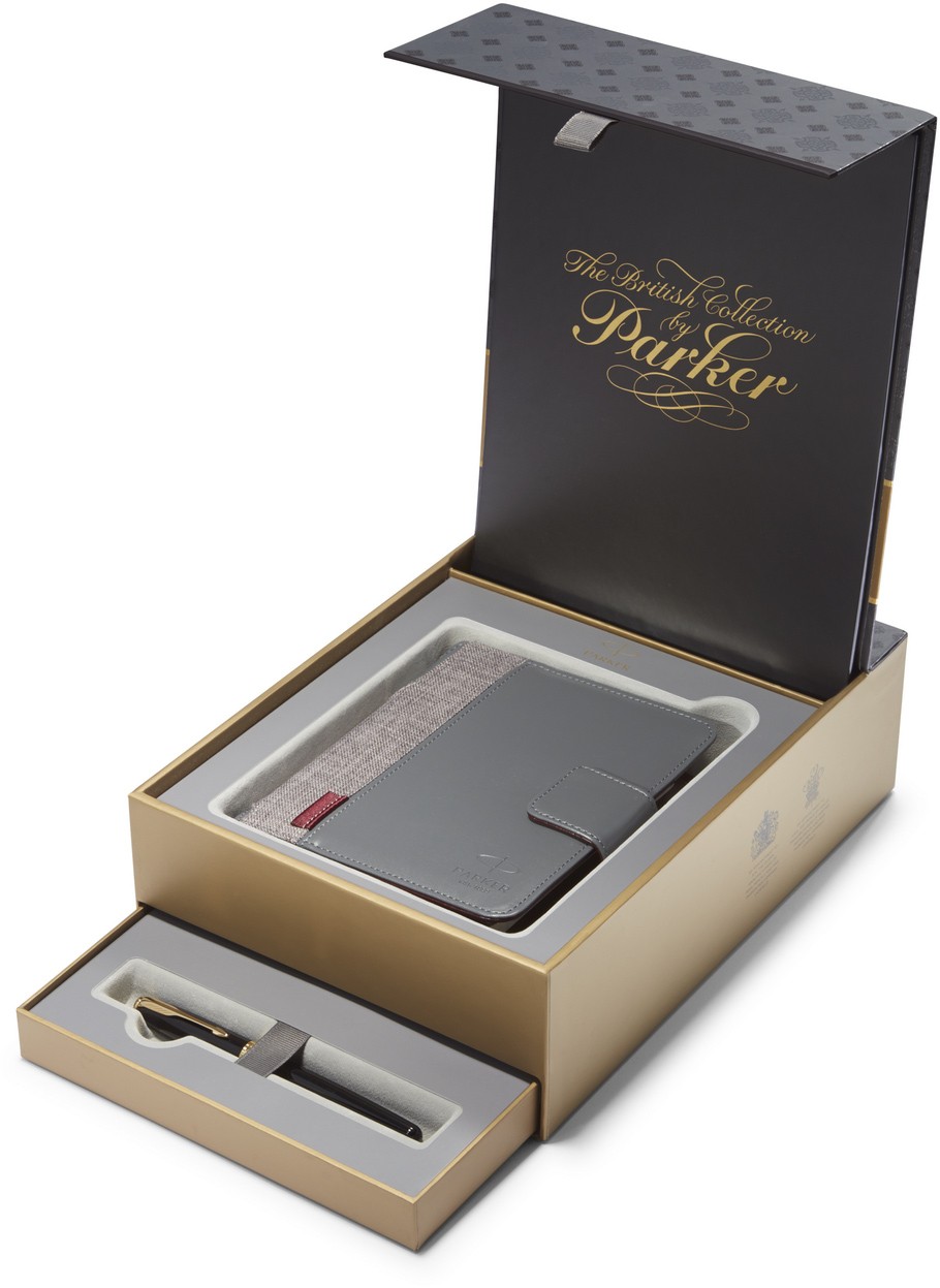 Набор Parker Sonnet F530 LaqBlack GT ручка перьевая F в компл.:органайзер