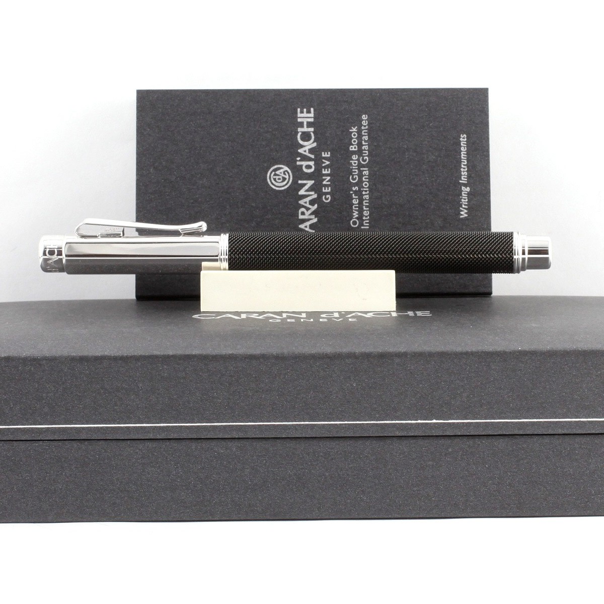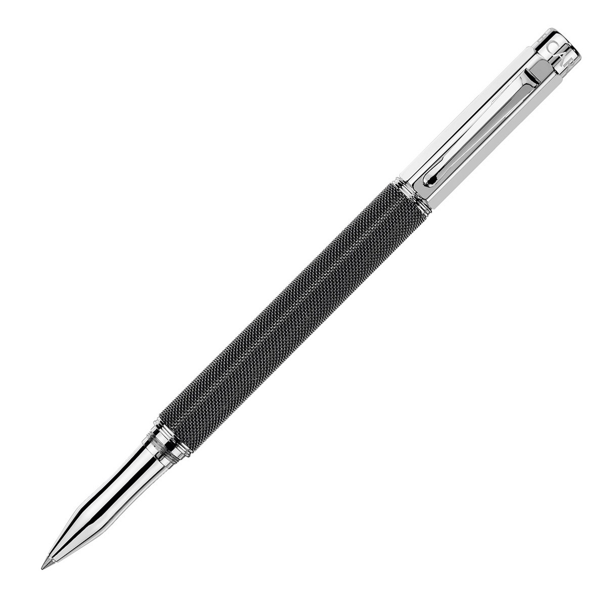 Достойный наследник рыцаря Вариуса Айвенго, Varius Ivanhoe Black от Caran d’Ache сочетает в себе уникальное ощущение кольчуги с элегантностью черной краски, тонирующей фактуру в самой глубине. Устойчивость этого оригинального покрытия на щестигранном латунном корпусе ручки достигается благодаря технологии PVD (Physical Vapor Deposition). "Кольчуга" идеально сочетается с посеребренными элементами с родиевым напылением. Серебристые поверхности украшены выгравированными логотипами "Caran d’Ache". Ручка-роллер Varius Ivanhoe Black - это совершенство в сочетании с утонченностью. Стержень (тонкий F) заполнен черными чернилами. Длина ручки с закрытым колпачком - 136,3 мм, без колпачка - 123,9 мм. Упаковка - подарочная коробка "Varius", размеры: 19,5 x 9,7 x 6,5 см.