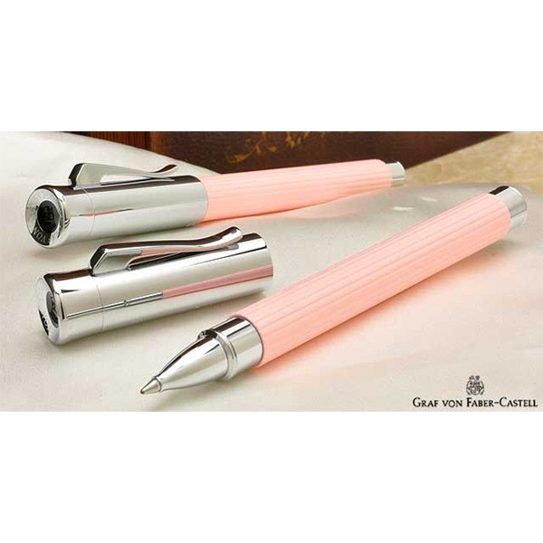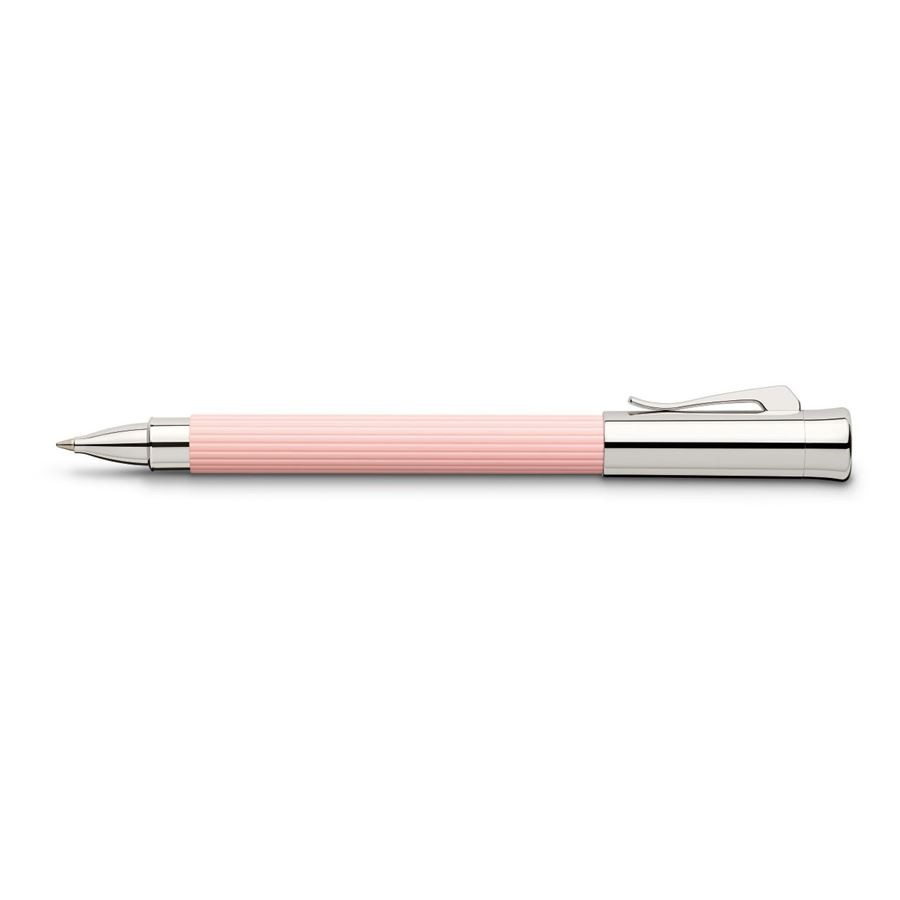 Ручка роллер "Tamitio Rose" немецкой марки "Graf von Faber-Castell" является выражением чистой элегантности. Рифленый корпус сделан из металла с поэтапной полировкой. Инновационный лак, созданный специально для "Tamitio" (эта серия известна также как "Initio"), нанесенный в несколько слоёв, придает корпусу ручки долговечный, благородный, матовый облик. Цвет лака - розовый. Кроме того ручку украшают высококачественные полированные передние и торцевые элементы и тонкая гравированная печать "Handmade in Germany" ("Сделано вручную в Германии"). Роллер оснащен качественным пишущим узлом, который плавно скользит по бумаге, а также стержнем увеличенного объема.