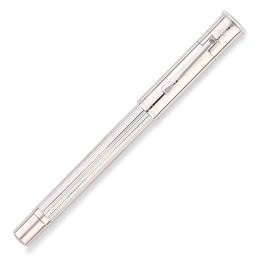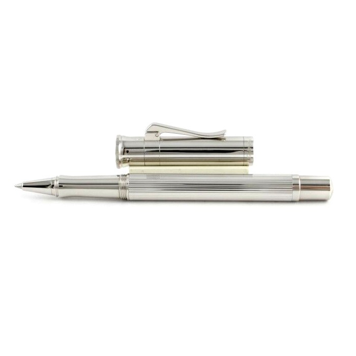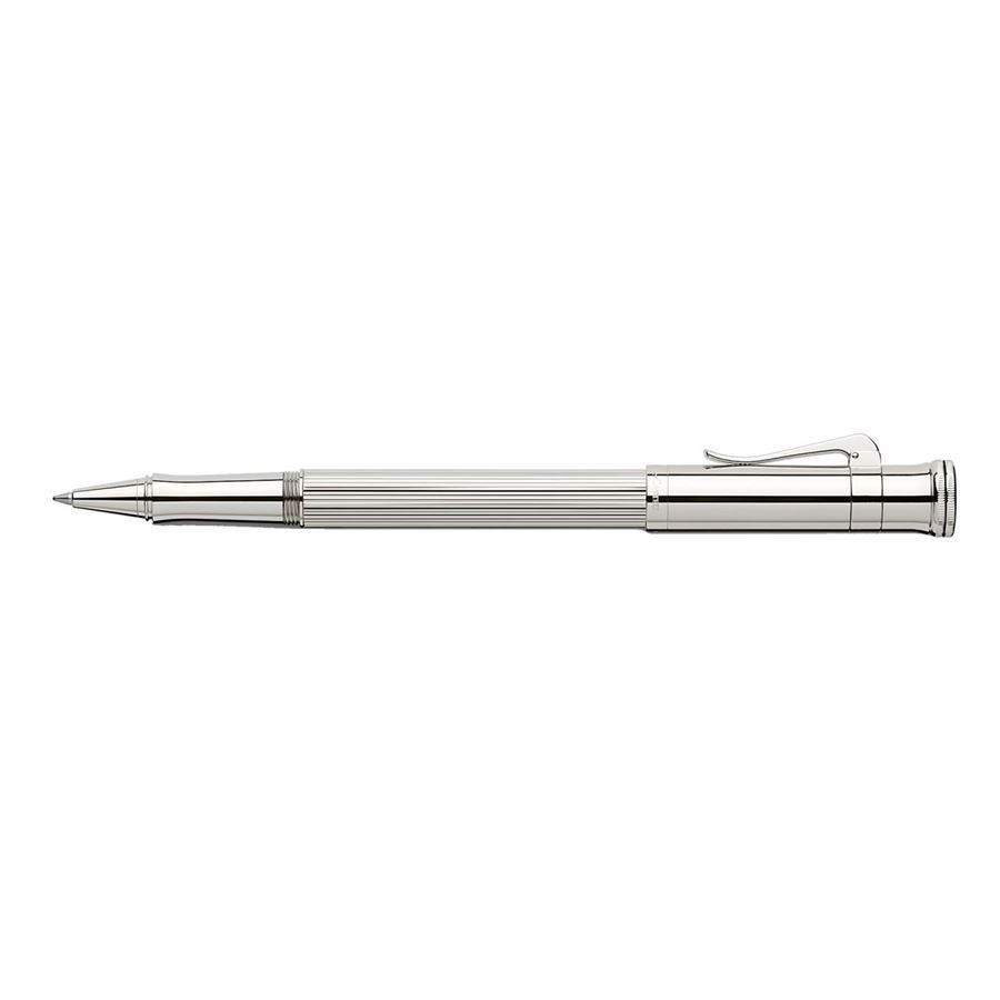 Ручка роллер "Classic Silver" немецкой марки "Graf von Faber-Castell" отличается благородным блеском настоящего серебра. Корпус сделан из стерлингового серебра (925 пробы) с продольными бороздками. Поверхности корпуса и других деталей ручки также - серебряные. Кроме того ручку украшает тонкая гравированная печать "Handmade in Germany" ("Сделано вручную в Германии"). Ручка-роллер оснащена качественным пишущим узлом, который плавно скользит по бумаге. Колпачок - завинчивающийся. Тугой зажим на колпачке имеет пружинную систему.