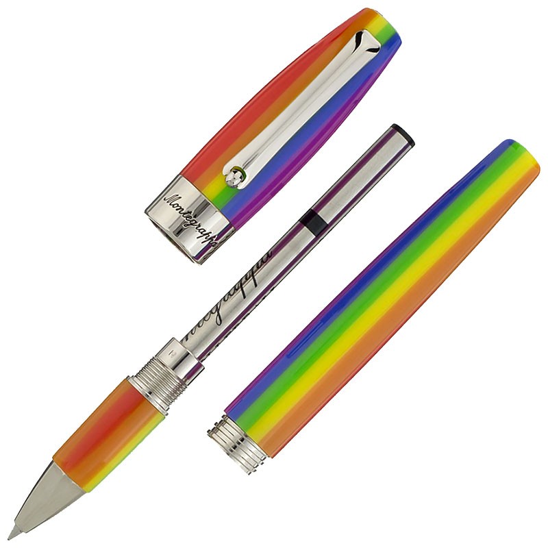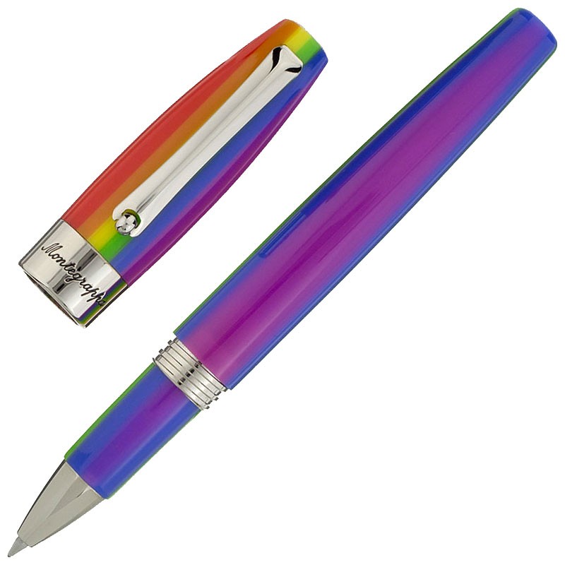 Ручка роллер "Fortuna Rainbow" ("Фортуна Рейнбоу") радужного цвета от итальянской компании "Montegrappa" сделана на счастье и радость. Радуга всегда была доброй приметой и символом надежды. Так что, сочетание слов "Фортуна-Радуга" становится пожеланием гармонии и мира в душе. Корпус ручки "Fortuna Rainbow" выполнен из разноцветной акриловой смолы. Отделка - стальная. Колпачок - закручивающийся. Чернила стержня - черные. Для замены идеально подойдут стандартные стержни для роллеров "Montegrappa" (IA00RLTC, IA00RLTB). Ручка станет прекрасным подарком как для мужчин, так и для женщин. Этот небольшой предмет поможет выразить поддержку и внести в чью-то жизнь яркие краски.