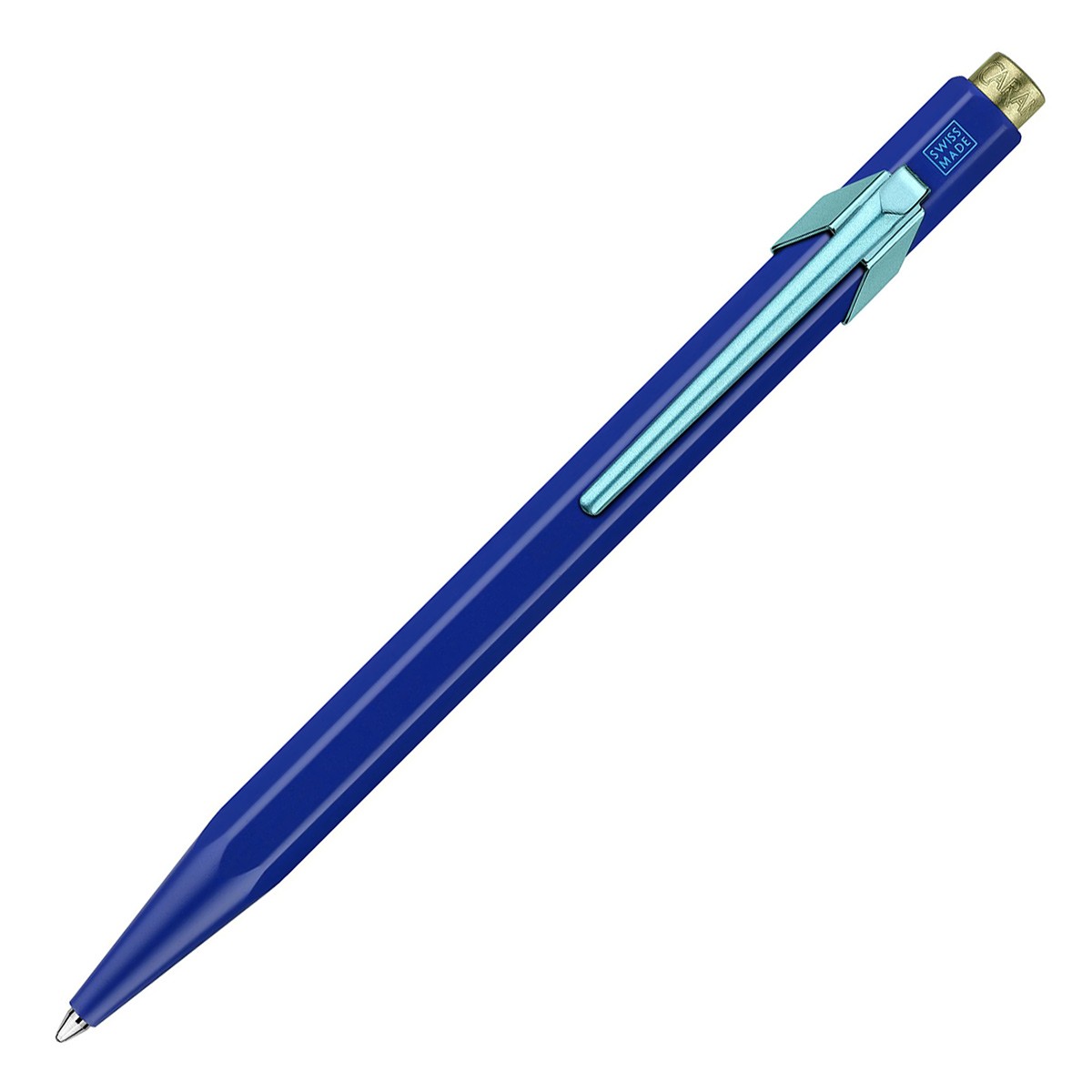 Ручка cинего цвета Carandache Office "Claim Your Style Blue" имеет легкий и прочный шестигранный алюминиевый корпус, покрытый ультрамариновым матовым лаком. На корпусе есть традиционная надпись "Swiss made" (произведено в Швейцарии), а также фраза "Limited Edition" ("Ограниченный выпуск") напечатанная на одной из граней. Клип - голубой лакированный. Нажимная кнопка - зеленая лакированная, с логотипом. Стержнь - "Caran d’Ache Goliath M", чернила - синие. Ручка упакована в подарочную ультра-тонкую металлическую коробку, украшенную кругом, показывающим цвет модели. Размеры коробки: 18.5 x 5.5 x 2 см. Вес: 0.088 кг.