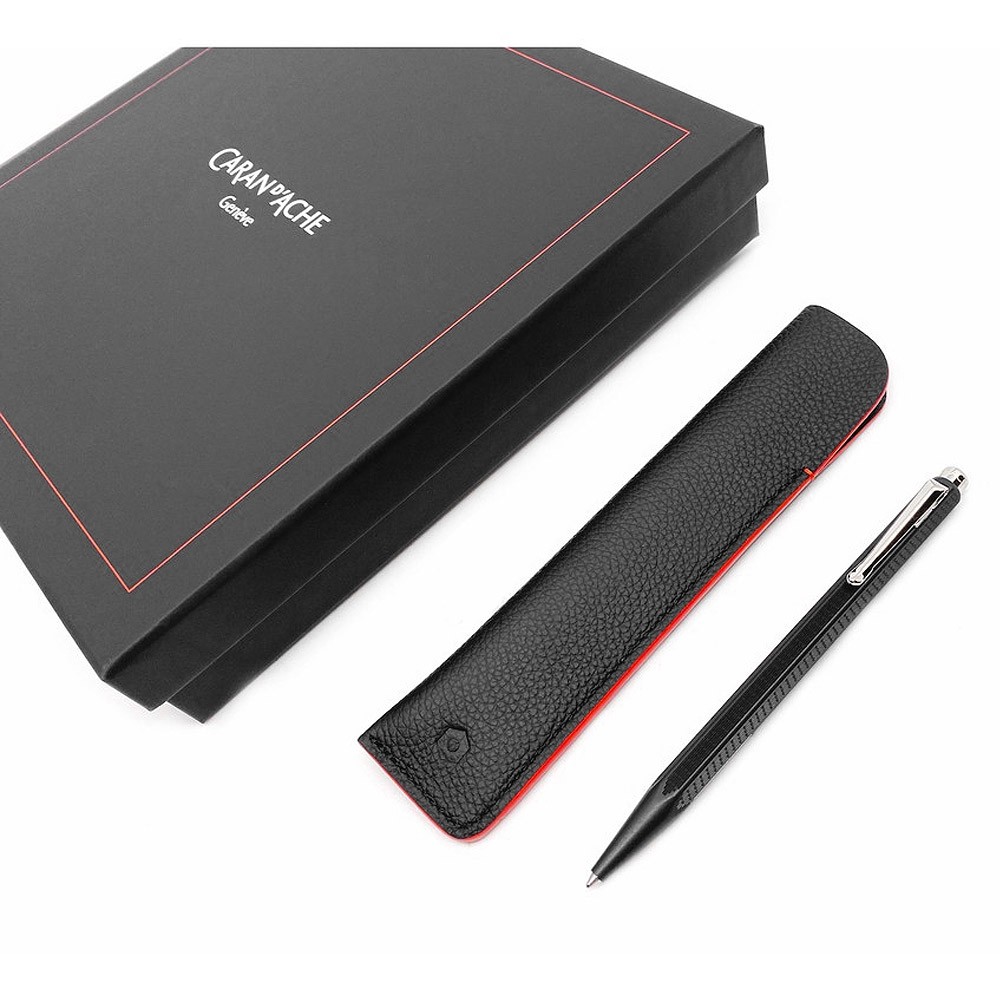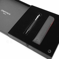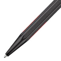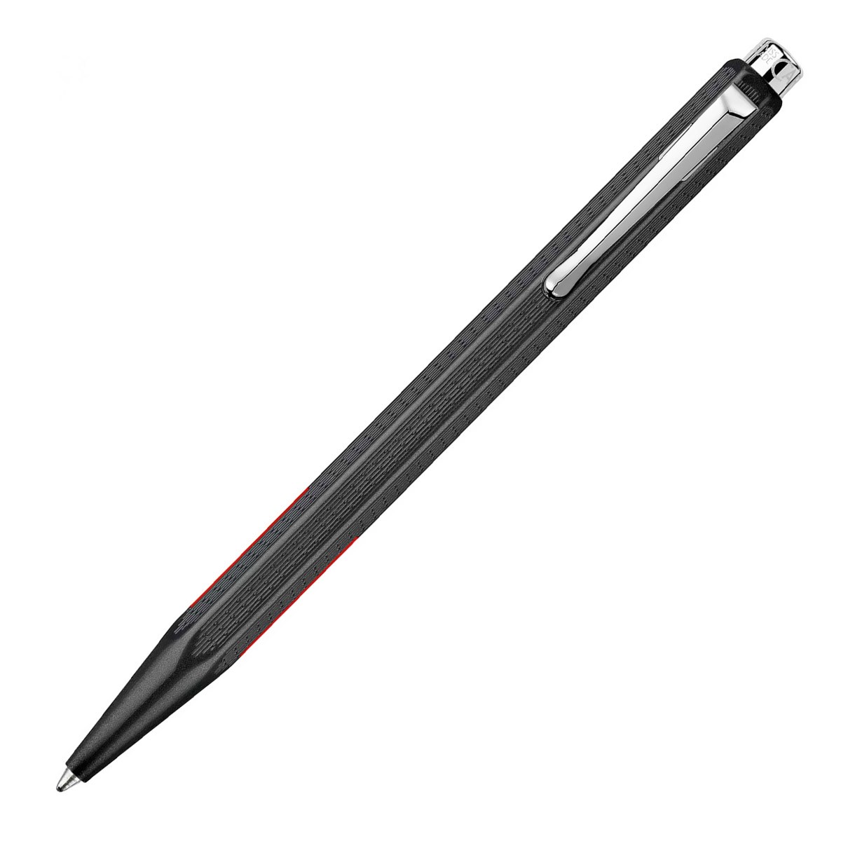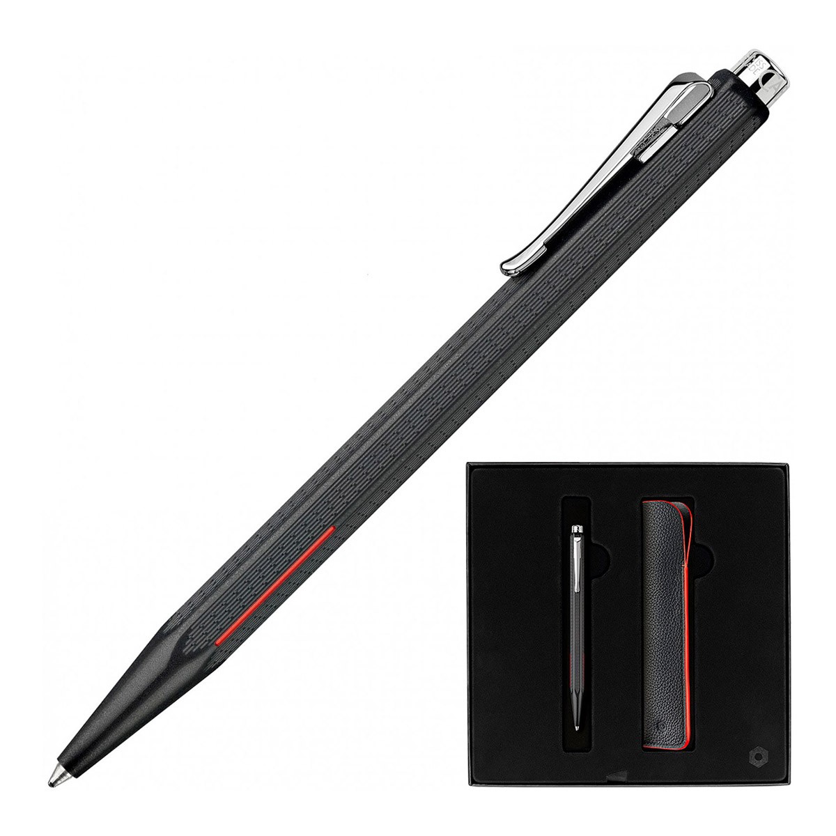 Коллекция Caran d’Ache Ecridor Racing в своём дизайне тонко переосмысливает коды автомобильной иконографии. Шестигранный корпус шариковой ручки Ecridor Racing выполнен из латуни, сверху нанесено черное хромовое покрытие с песочной отделкой для матового эффекта. Гильоширование машинной резки, сделанное на корпусе, напоминает решетки радиатора гоночных автомобилей. Красный лак, нанесенный вручную по двум ребрам, напоминает свечение стоп-сигналов. Упругий зажим и кнопка подачи стержня (с логотипом Caran d’Ache, выгравированным лазером) имеют палладиевое покрытие. Стержень - Caran d'Ache M Black Goliath (черные чернила, хватает на 600 страниц A4). Этот пишущий инструмент, в современном, но утонченном стиле, станет идеальным компаньоном для мужчин с характером. Ручка поставляется в комплекте с кожаным футляром, выполненном в том же стиле - черная матовая поверхность, тонкая красная окантовка. Оба предмета упакованы в черную подарочную коробку, защищенную красной "обложкой".