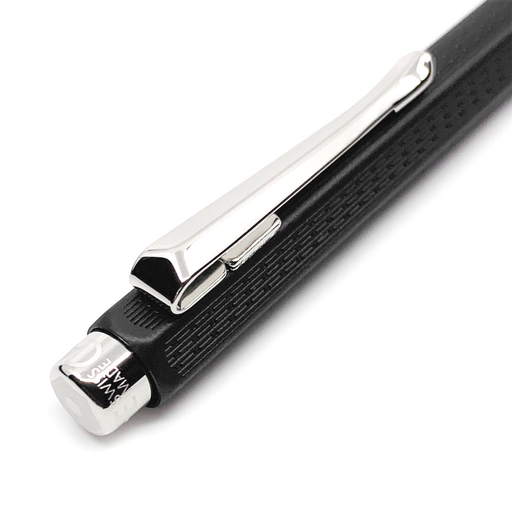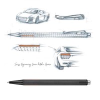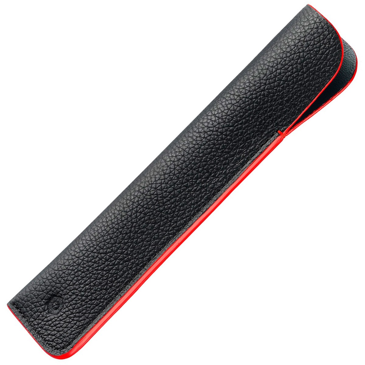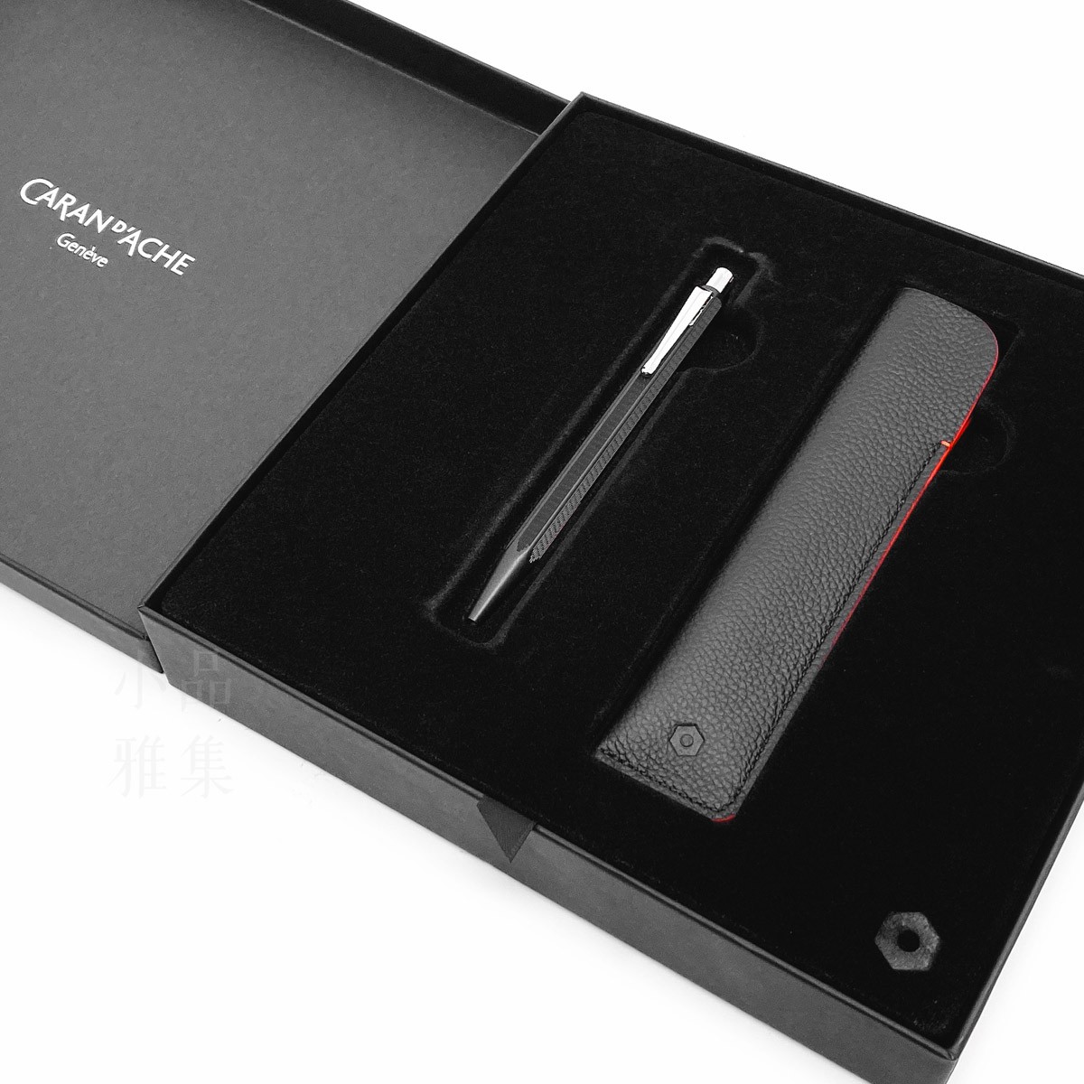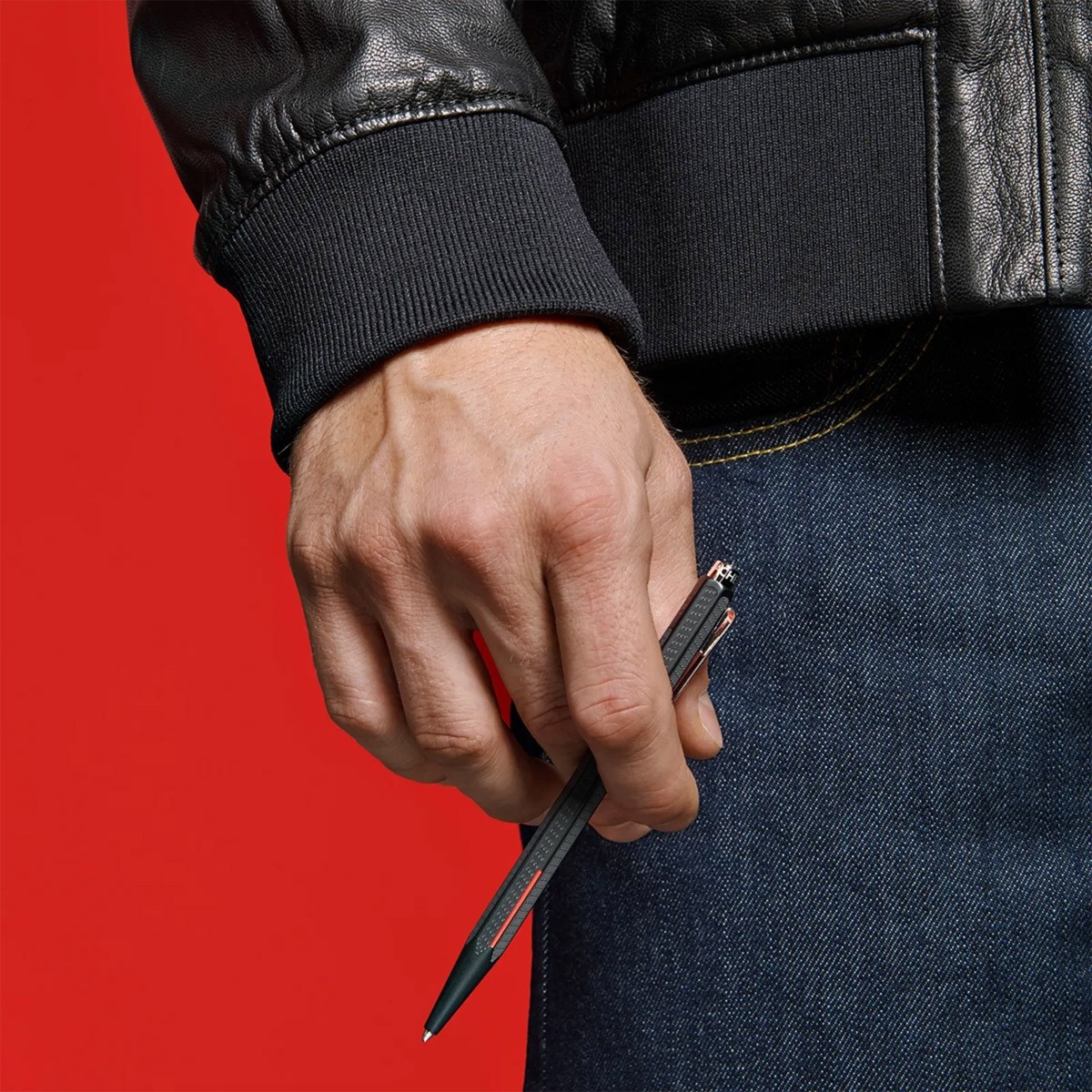 Коллекция Caran d’Ache Ecridor Racing в своём дизайне тонко переосмысливает коды автомобильной иконографии. Шестигранный корпус шариковой ручки Ecridor Racing выполнен из латуни, сверху нанесено черное хромовое покрытие с песочной отделкой для матового эффекта. Гильоширование машинной резки, сделанное на корпусе, напоминает решетки радиатора гоночных автомобилей. Красный лак, нанесенный вручную по двум ребрам, напоминает свечение стоп-сигналов. Упругий зажим и кнопка подачи стержня (с логотипом Caran d’Ache, выгравированным лазером) имеют палладиевое покрытие. Стержень - Caran d'Ache M Black Goliath (черные чернила, хватает на 600 страниц A4). Этот пишущий инструмент, в современном, но утонченном стиле, станет идеальным компаньоном для мужчин с характером. Ручка поставляется в комплекте с кожаным футляром, выполненном в том же стиле - черная матовая поверхность, тонкая красная окантовка. Оба предмета упакованы в черную подарочную коробку, защищенную красной "обложкой".