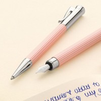 Ручка шариковая "Tamitio Rose" немецкой марки "Graf von Faber-Castell" является выражением чистой элегантности. Рифленый корпус сделан из металла с поэтапной полировкой. Инновационный лак, созданный специально для "Tamitio" (эта серия известна также как "Initio"), нанесенный в несколько слоёв, придает корпусу ручки долговечный, благородный, матовый облик. Цвет лака - розовый. Кроме того ручку украшают высококачественные полированные передние и торцевые элементы и тонкая гравированная печать "Handmade in Germany" ("Сделано вручную в Германии"). Ручка оснащена качественным пишущим узлом, который плавно скользит по бумаге, а также стержнем увеличенного объема. Механизм выдвижения стержня - поворотный.