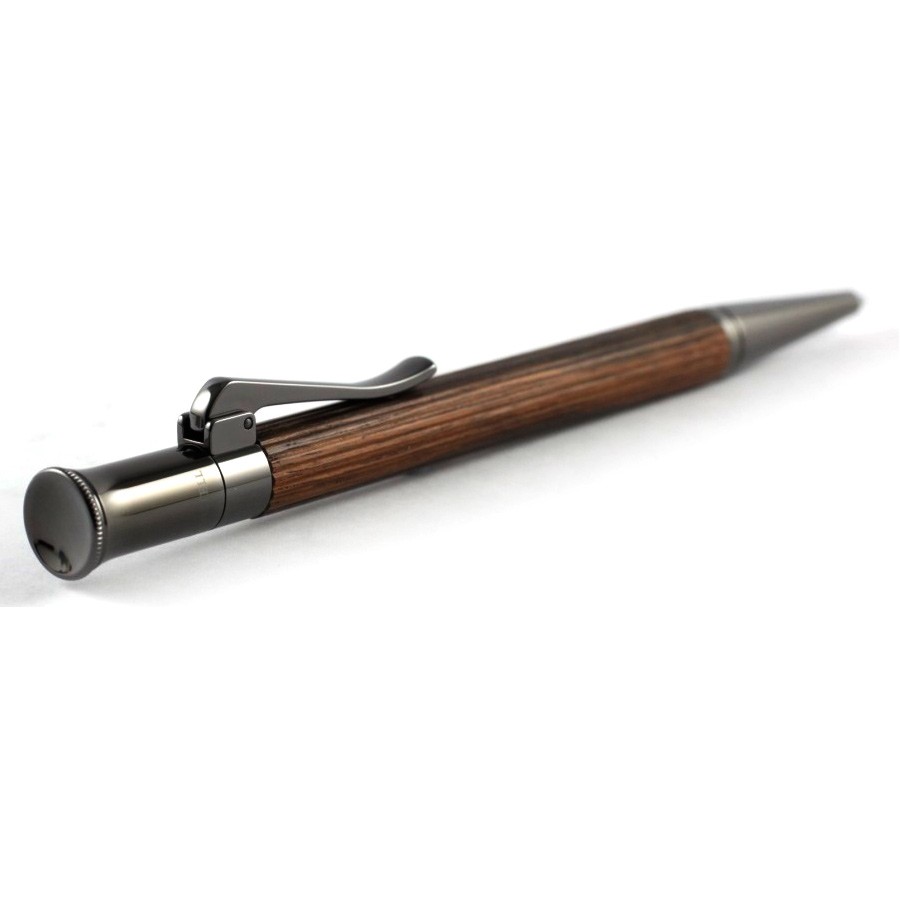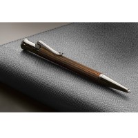 Шариковая ручка "Classic Macassar" немецкой марки "Graf von Faber-Castell" объединяет в себе естественное и теплое обаяние древесины с элегантной темной рутениевой поверхностью декоративных деталей. Корпус сделан из драгоценной древесины "макассар", добываемой в Индонезии. Эта древесина - чрезвычайно плотная и прочная. Она является разновидностью эбеновой древесины и известна также под названием "пламенный эбен" из-за проступающих на черном фоне жёлтоватых разводов, имеющих форму языков пламени. На деревянную поверхность ручки нанесены продольные бороздки. Кроме того ручку украшают покрытые рутением передние и торцевые элементы и тонкая гравированная печать "Handmade in Germany" ("Сделано вручную в Германии"). Шариковая ручка оснащена качественным пишущим узлом, который плавно скользит по бумаге. Механизм выдвижения стержня - поворотный. Тугой зажим имеет пружинную систему.