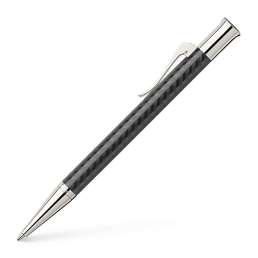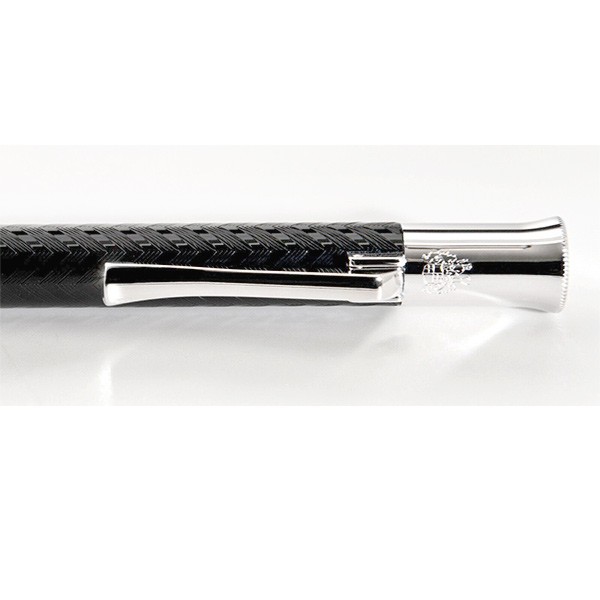 Шариковая ручка черного цвета "Guilloche Chevron Black" немецкой марки "Graf von Faber-Castell" выполнена из драгоценной смолы, декорированной "шевронами" (от фр. "chevron" - "V-образные знаки") в технике "гильош" ("guilloche"), используемой ювелирами при обработке драгоценных металлов. Для создания этой ручки её корпус вручную многократно покрывался смолистым лаком, с последующей сушкой и полировкой каждого слоя. После чего вручную наносилась гравировка. В результате любая из ручек серии "Guilloche" является штучной работой, хранящей тепло человеческих рук, - уникальной структурой с индивидуальным орнаментом. Помимо тонкой гравировки ручку украшают покрытые родием передние и торцевые элементы, и тонкая гравированная печать "Handmade in Germany" ("Сделано вручную в Германии"). Шариковая ручка оснащена качественным пишущим узлом, который плавно скользит по бумаге. Механизм выдвижения стержня - поворотный. Тугой зажим имеет пружинную систему.