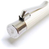 Шариковая ручка "Intuition Platino Fluted Ivory" немецкой марки "Graf von Faber-Castell" объединяет в себе теплый матовый блеск ребристого корпуса и прохладную элегантность платиновой поверхности декоративных деталей. Небольшое углубление на корпусе в области захвата не только говорит о кропотливости работы, проделанной мастерами, но и обеспечивает максимальный комфорт во время письма. Корпус сделан из драгоценной смолы цвета слоновой кости, многократно нанесенной вручную слой за слоем. На поверхность корпуса нанесены продольные бороздки. Кроме того ручку украшают покрытые платиной передние и торцевые элементы и тонкие гравировки. Шариковая ручка оснащена качественным пишущим узлом, который плавно скользит по бумаге. Механизм выдвижения стержня - поворотный. Тугой зажим имеет пружинную систему.