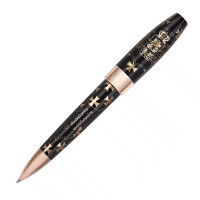 Ручка шариковая "Fortuna Грузия" черного цвета с золотистой отделкой от итальянской компании "Montegrappa" входит в серию, посвященную культуре и традициям республики Грузия. Лаконичная форма и игра строгих тонов придают ручке благородный и мужественный облик. Ее корпус и верхняя часть выполнены из акриловой смолы и украшены золотистой гравировкой: герб Грузии, очертания границ и кресты с национального флага. Отделка - стальная с позолотой. Чернила стержня - черные. Стержень выдвигается поворотом верхней части ручки. Для замены идеально подойдут универсальные шариковые стержни "Montegrappa" (IA00BMTC, IA00BMTB). Ручка станет отличным подарком для любого представителя грузинского народа и для всех, кому дорог этот прекрасный край.