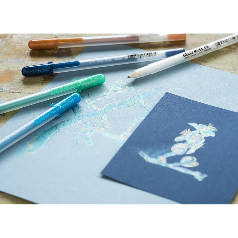 Гелевые ручки впервые появились в 1984 году благодаря японской компании "Sakura". С тех пор компания-первооткрыватель постоянно совершенствовала свое изобретение. Гелевые ручки "Gelly Roll" от "Sakura" это - результат многолетнего поиска идеальных гелевых чернил и идеальных пишущих узлов. Ручки "Gelly Roll" прекрасно пишут и удобно лежат в руке. Чернила обладают высокой кроющей способностью, водостойкостью, химической стабильностью и устойчивостью к выцветанию (кроме флуоресентных оттенков), поэтому они идеально подходят для художественных работ, юридических документов - везде, где важно постоянство. На практике гелевые ручки "Gelly Roll" находят самое широкое применение в различных видах творчества: леттеринг, кардмейкинг (создание поздравительных открыток и приглашений), скрапбукинг, рисование иллюстраций и комиксов; также ручки используются при отделке и детализации художественных работ в смешанных техниках. Хранить ручки рекомендуется в горизонтальном положении с закрытым колпачком.